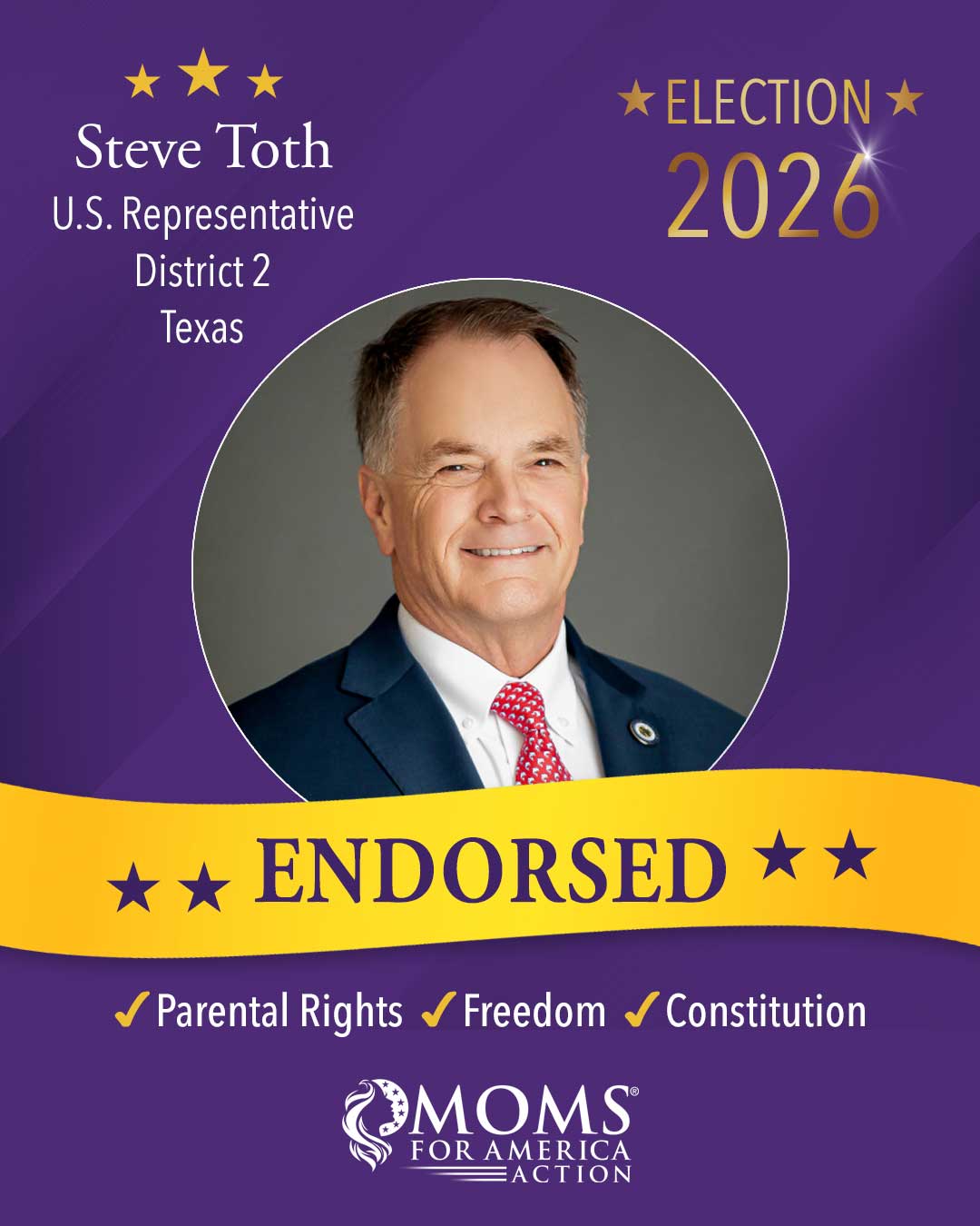 Moms for America Action endorsements apply only to the current election cycle and are not transferable to future election years or other elections.